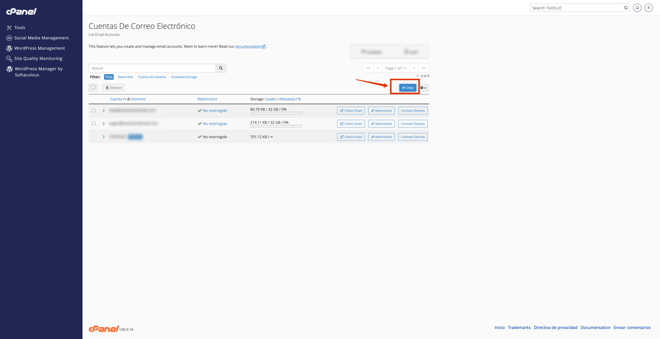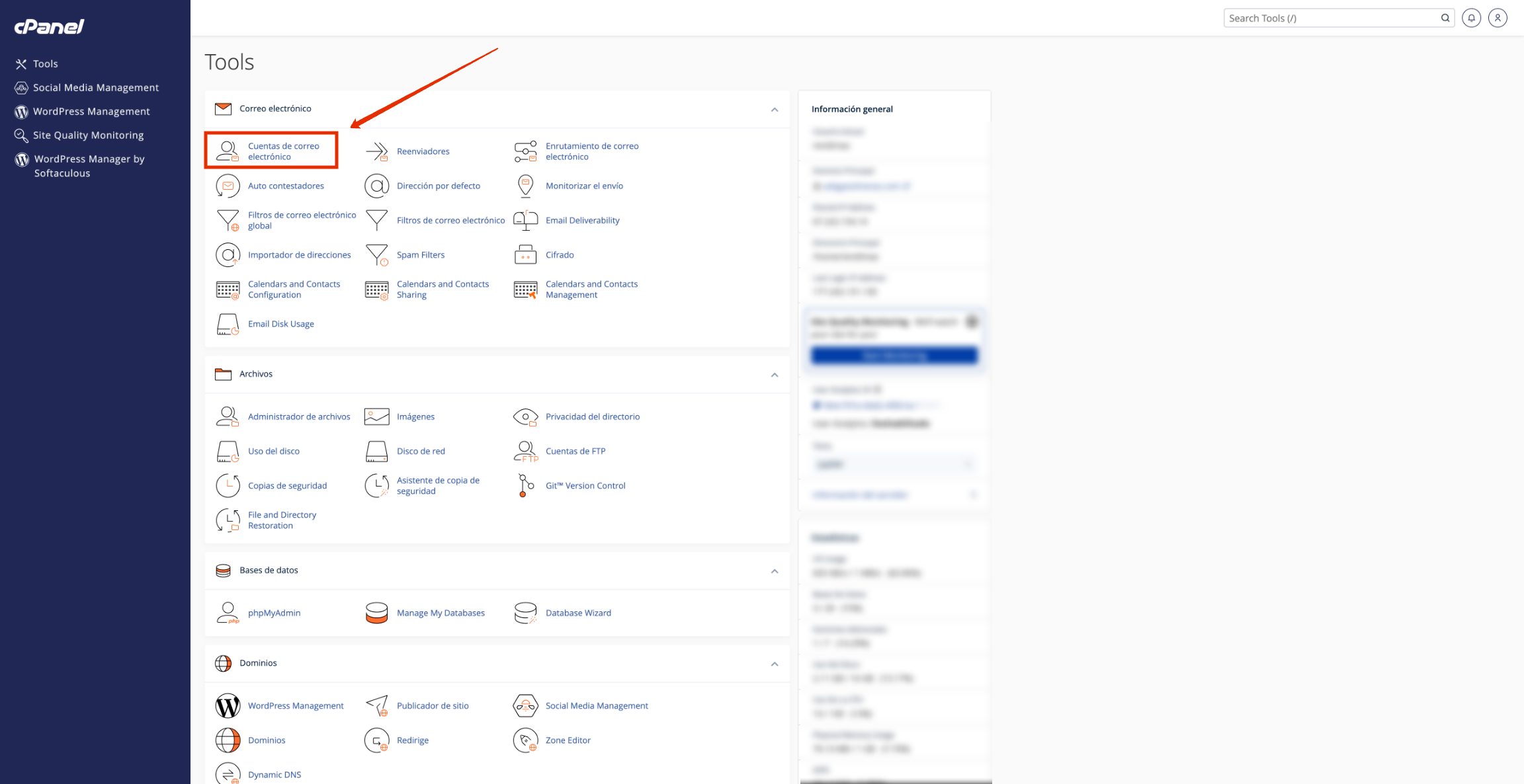 🔹 Paso 2: Ingresa al módulo “Cuentas de correo electrónico”