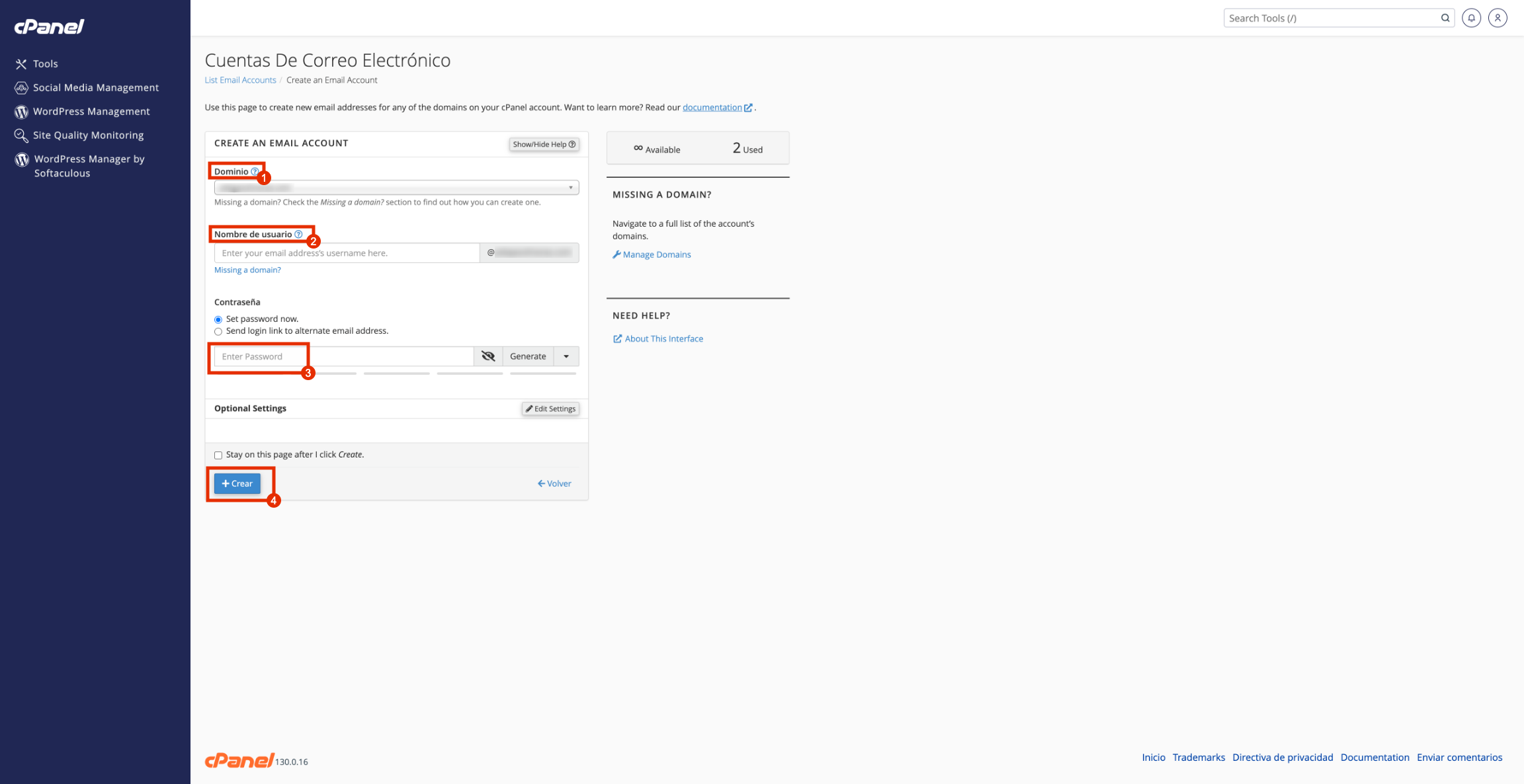 - Nombre de usuario: elige el prefijo (por ejemplo, ventas, info, contacto).